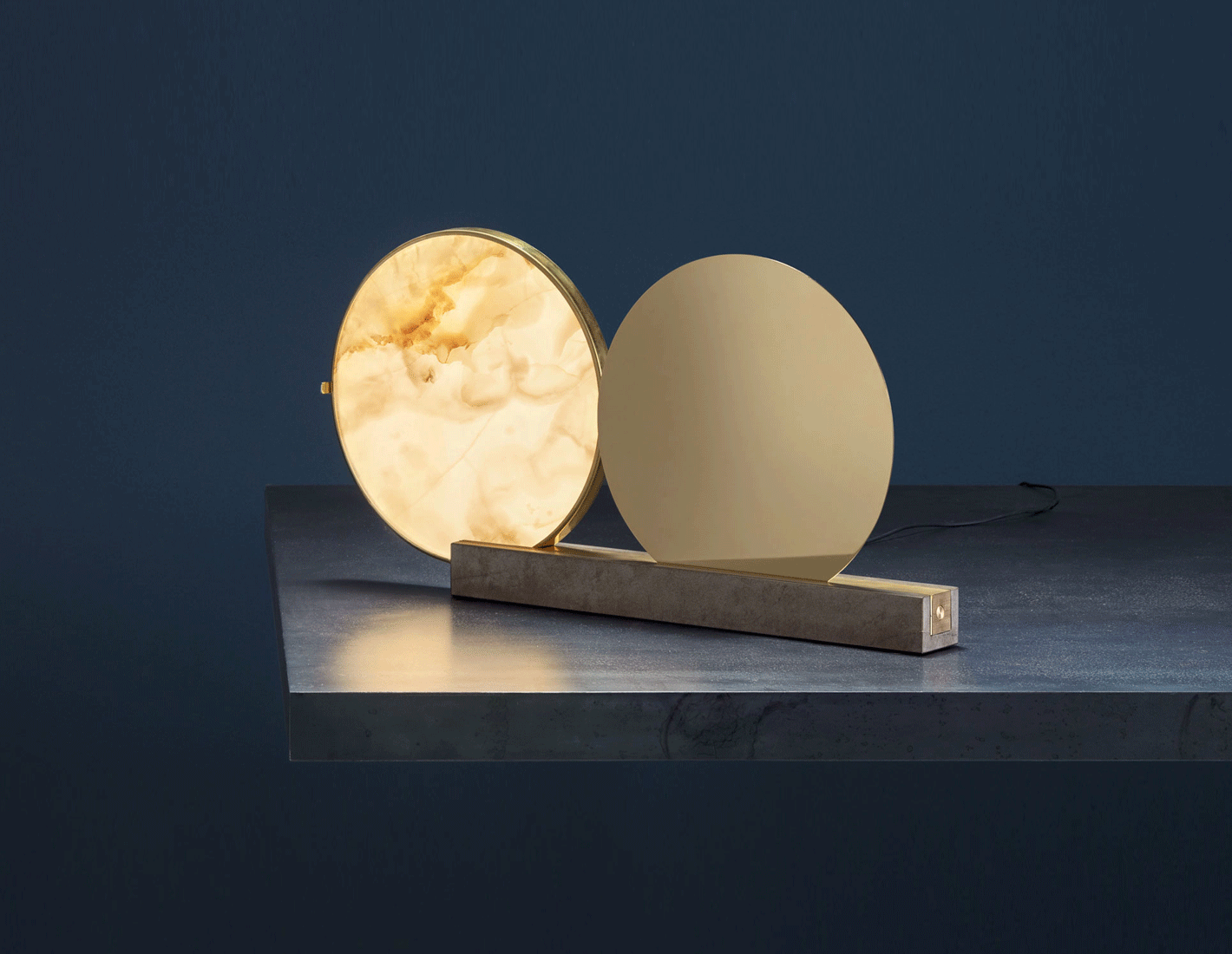 brass, Medea limestone, alabaster diffuser